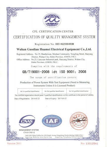 | 持证单位: 武汉国电华美电气设备有限公司 |