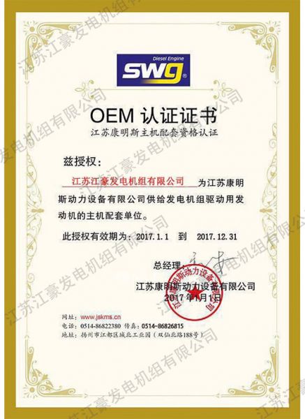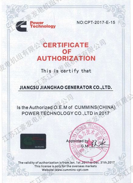 江苏康明斯OEM授权书