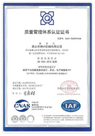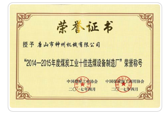 资质名称: “2014-2015年度煤炭工业十佳选煤设备制造厂”荣誉称号 |