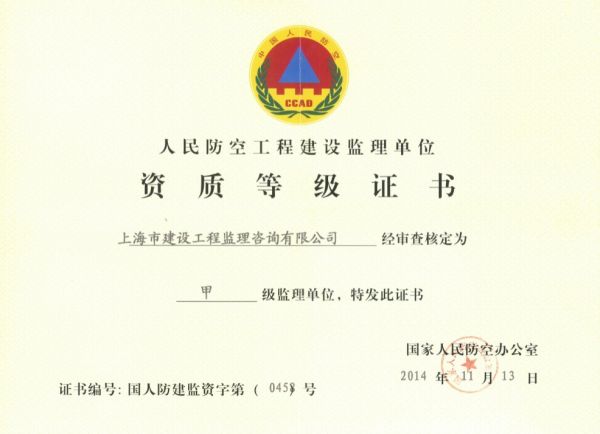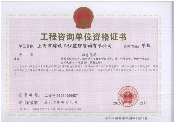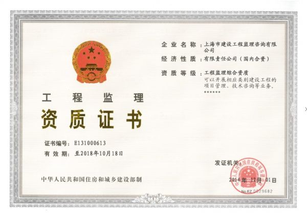 资质单位: 上海市建设工程监理咨询有限公司