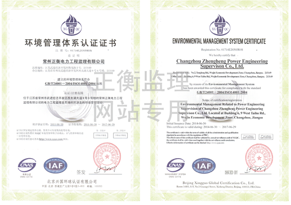 环境管理体系认证证书 发布时间: 2017-07-12 10:50:07 发布网站: 中国化工招标网