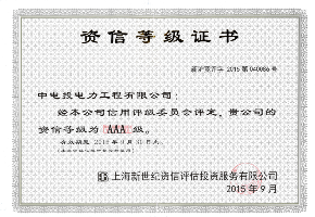 AAA级资信等级证书2015版