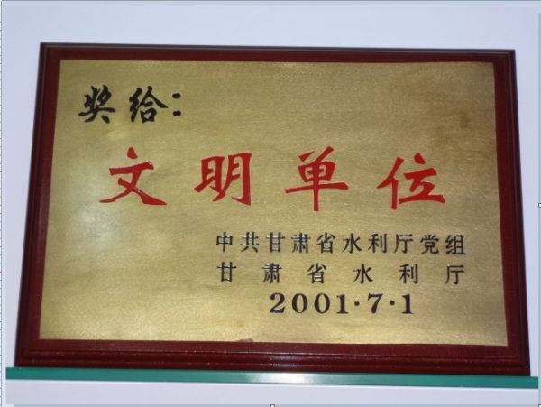 2013年3月2日被甘肃省水利厅评委“全省水利安全生产先进单位