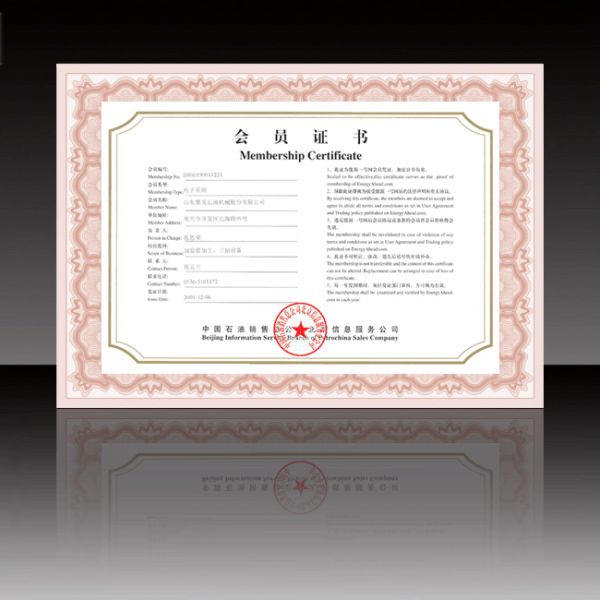 能源一号网会员证书