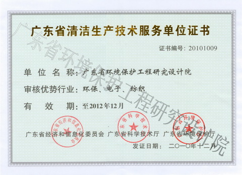 广东省清洁生产技术服务单位证书 发布时间: 2017-07-18 14:35:28 发布网站: 中国化工招标网