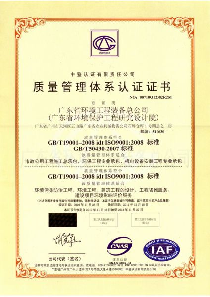 质量管理体系认证证书 发布时间: 2017-07-18 14:35:44 发布网站: 中国化工招标网