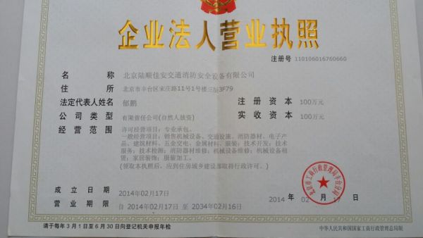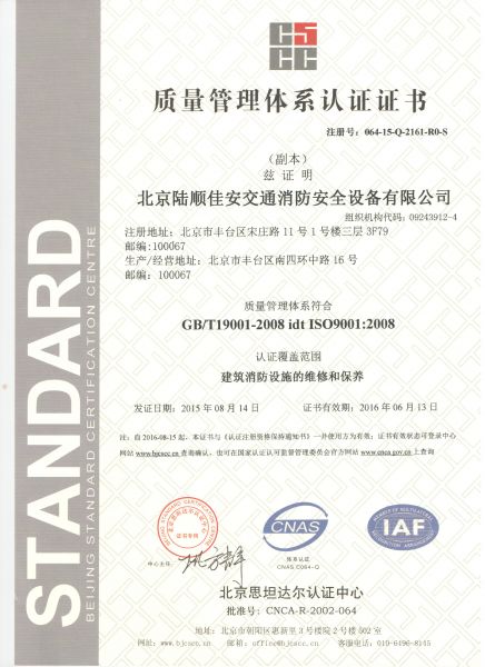 资质单位: 北京陆顺佳安交通消防安全设备有限公司