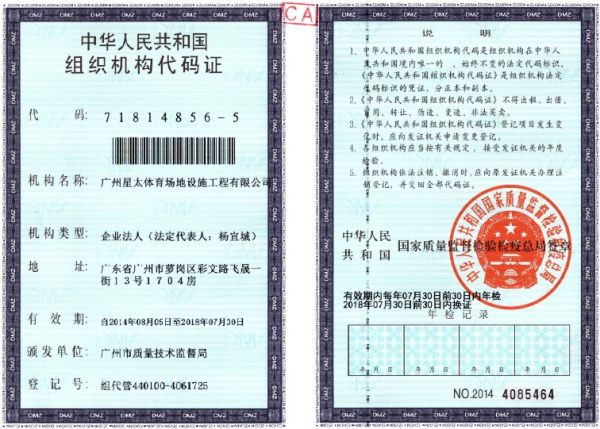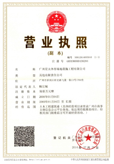 | 持证单位: 广州星太体育场地设施工程有限公司 |