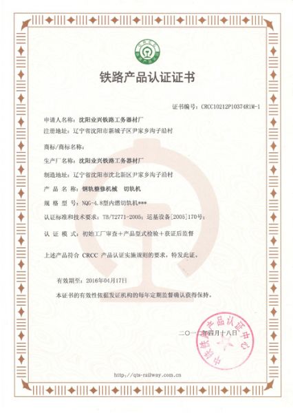 产品名称: 铁路产品认证证书6 |
