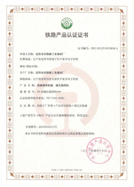 铁路产品认证证书8 发布时间: 2017-08-08 14:56:59 发布网站: 中国化工招标网